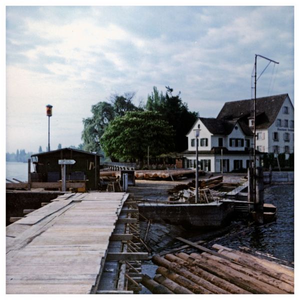 Die Molenplattform ist fertig betoniert, Vorbereitungen für das Schlagen der Dalben
