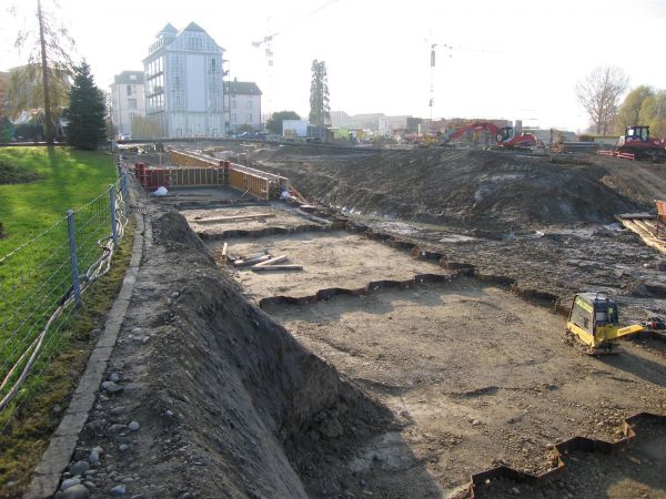 Hafenbau 2006/07, Spundwand an der SW-Seite mit Verstärkungen