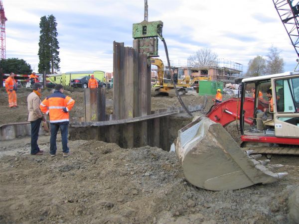 Spundwände lassen sich nicht genügend tief einrammen wegen eines grösseren Felsbrockens in der Tiefe