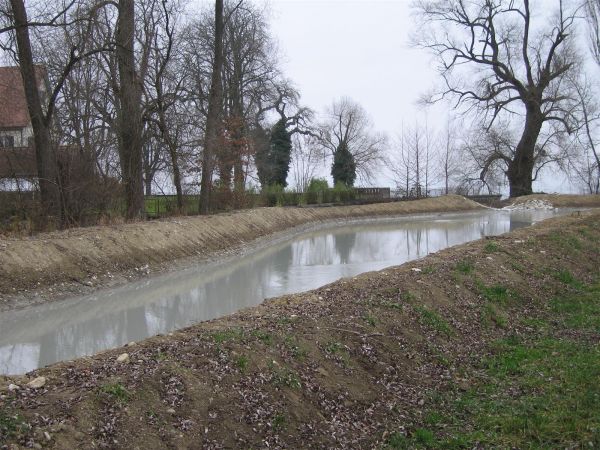Hafenbau 2006/07, Ablaufbecken aus dem Absetzbecken entlang Stichbach