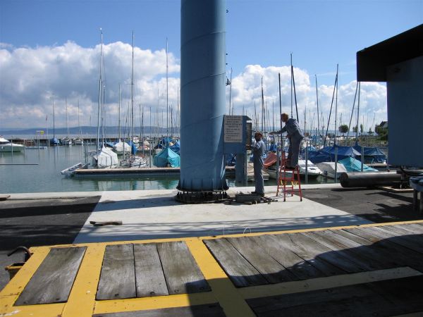 Setzen der Kransäule am neuen Standort, Einziehen der Elektrokabel