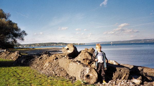Matthias Gantenbein bei den "bombensicheren" Abwasserleitungen aus dem Bunkerabbruch