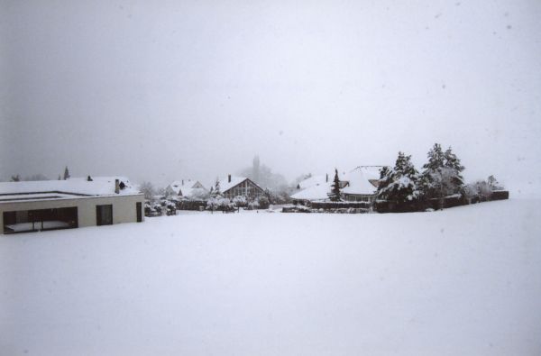 Blick von der Rigistrasse auf die Häuser Im Obstgarten