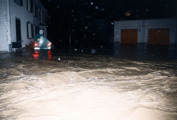 Hochwasser Stichbach 14.Juni 99, Brunnenstrasse, hinter Haus Seitz